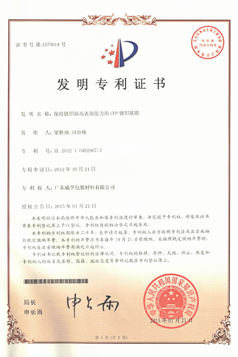 保持鍍鋁面高表面張力的CPP鍍鋁基膜