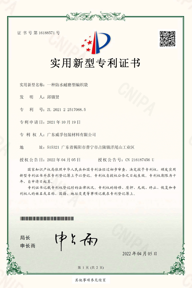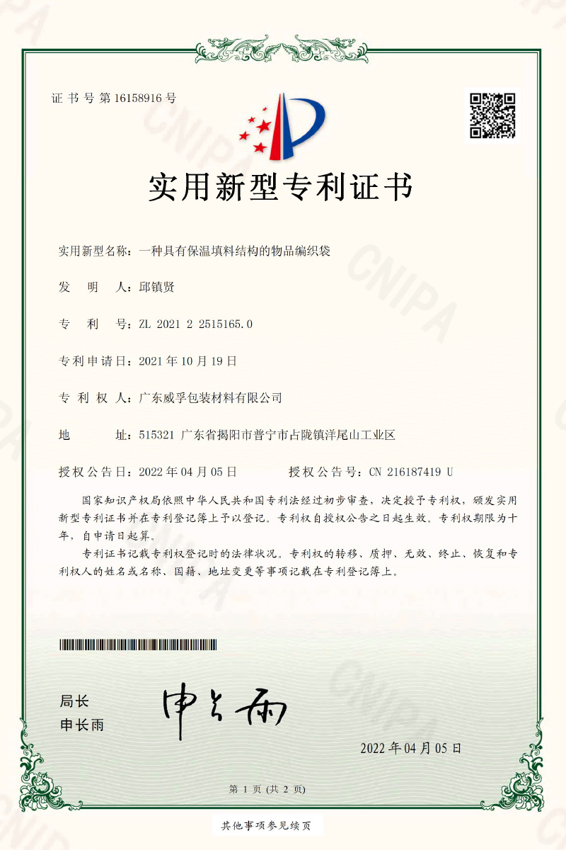種具有保溫填料結(jié)構(gòu)的物品編織袋